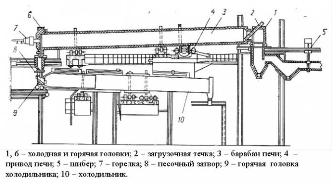 Schéma d'un four à tambour rotatif.