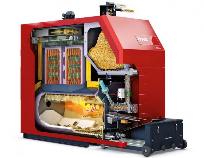 Chaudière à granulés Hoval en coupe.