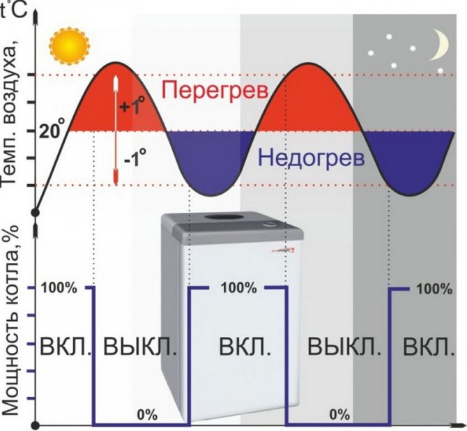 Le fonctionnement de la chaudière en cas de commande manuelle est associé à des mises en marche et à l'arrêt fréquents de l'équipement, ainsi qu'au fonctionnement de la pompe de circulation, quel que soit le mode dans lequel se trouve l'unité: fonctionnement ou attente. Cela conduit à une usure rapide de l'équipement de chauffage et ne contribue pas à une consommation de carburant efficace.