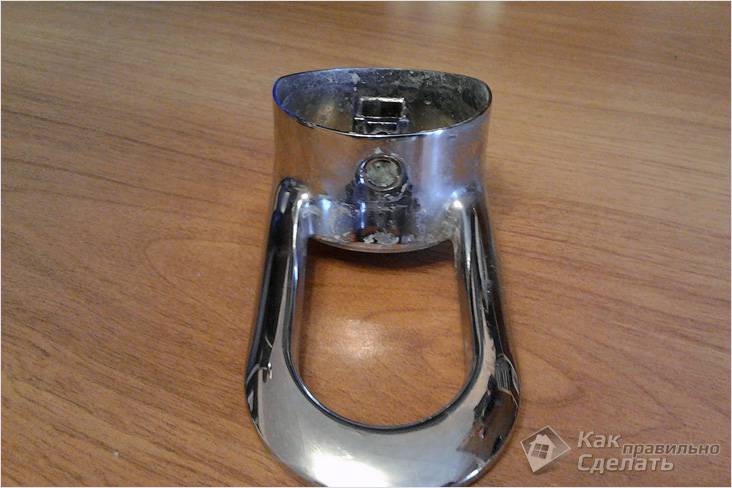 - Vous verrez une vis à la place de la fiche. C'est grâce à lui que le levier est fixé au mélangeur. Dévissez-le avec un tournevis.