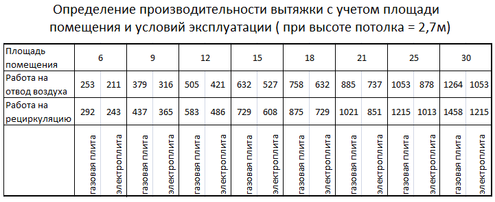 Si votre cuisine ou salle de bain mesure 15m2 avec une hauteur sous plafond de 2,7m, la gaine de ventilation a un tirage d'air normal, la distance ne dépasse pas 0,5m, il n'y a pas de coudes de tuyaux, et la hotte fonctionnera dans l'échappement mode, alors nous vous recommandons d'acheter une hotte aspirante d'une capacité de : 580 mètres cubes / heure.