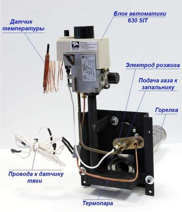 Dans les chaudières à gaz à chambre de combustion ouverte (unités atmosphériques), un thermostat de sécurité contrôle la présence du tirage et de la température des fumées, avec une chambre de combustion fermée (unités turbocompressées) - la pression de l'air soufflé par la turbine.
