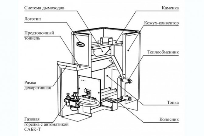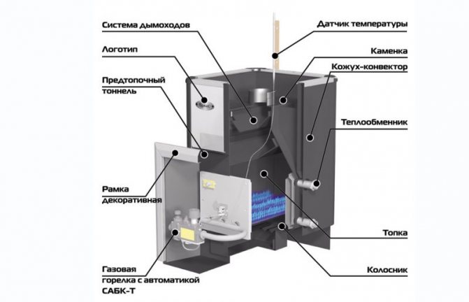 Si nous considérons un poêle pour un bain ou un sauna, il vaut la peine de s'arrêter dans une structure de chauffage au gaz.