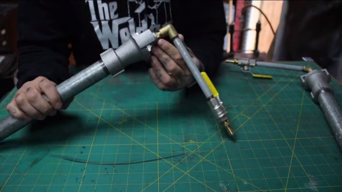 Ensuite, de la même manière, installez le tuyau d'alimentation en gaz, qui doit être en face de la chambre de combustion, là où le brûleur se tiendra.