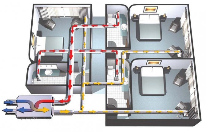 Cet exemple montre clairement que lors de la conception, il s'avère souvent nécessaire de connecter de vos propres mains deux systèmes de ventilation opposés.