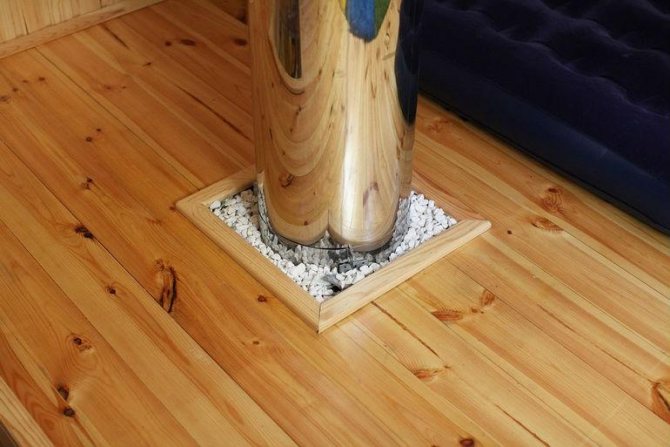 - le tuyau est fixé à l'extrémité supérieure de la structure à l'aide d'une douille ou d'un verrou à rainure épine. Un trou est découpé sur le manchon pour connecter un générateur de chaleur basé sur un raccord universel;