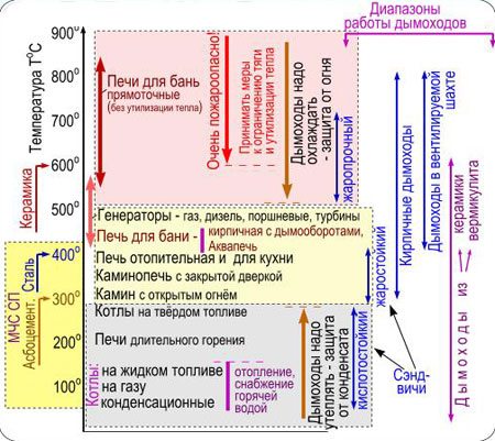 La fumée, selon le combustible utilisé, se réchauffe en moyenne jusqu'à 600 ° C, c'est pourquoi une double brique de silicate de 150 m est souvent utilisée pour la construction de la cheminée.