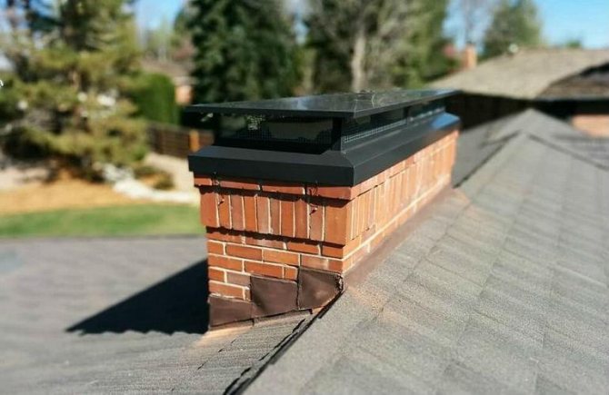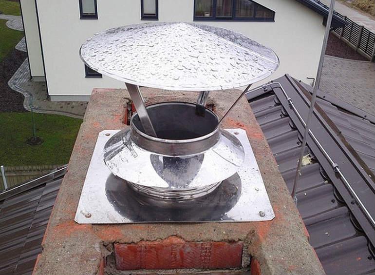 Pour empêcher les précipitations atmosphériques de pénétrer dans le tuyau, un parapluie de protection (déflecteur) est installé à son extrémité supérieure.