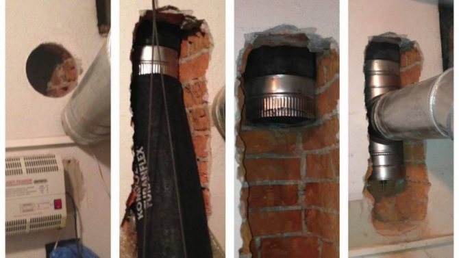 Afin de ne pas construire une nouvelle cheminée, ils ont proposé un manchon. La procédure consiste à insérer le tuyau à l'intérieur du canal sans détruire la maçonnerie.Un manchon en acier inoxydable est considéré comme la meilleure option, mais la céramique, l'amiante ou le polymère peuvent être utilisés.