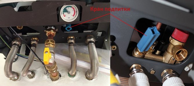 Il y a une vanne spéciale dans le corps de l'unité, située près du tuyau de dérivation, pour fournir le liquide de refroidissement au système. Pendant le processus de remplissage, la pression dans le système est surveillée, grâce à la présence de capteurs et de manomètres. Ils sont déjà installés dans des chaudières modernes et vous n'avez pas besoin de les acheter en plus. Lorsque l'appareil est rempli d'eau, une marque monte sur le capteur. Lorsqu'il atteint la marque d'atmosphère 1,5-2, l'alimentation en eau est coupée et ainsi le remplissage est terminé.
