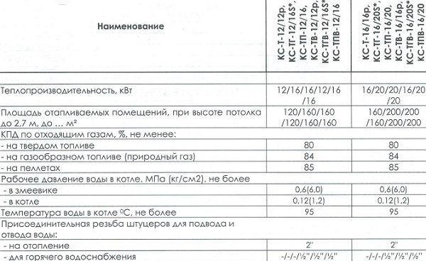 - pression de fonctionnement du vecteur d'énergie dans la bobine - 0,6 MPa, dans la chaudière - 0,12 MPa;
