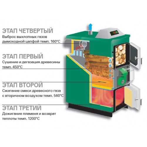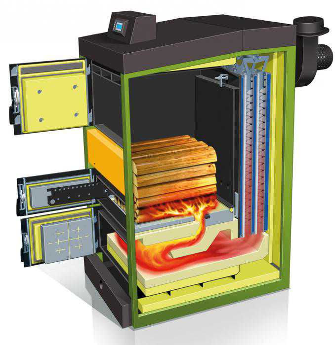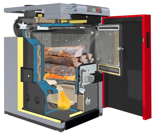 Dans les chaudières à pyrolyse, l'ensemble du processus est divisé en trois phases: séchage du combustible, synthèse de matières combustibles à l'état gazeux, combustion d'une substance gazeuse. Le carburant est synthétisé à 85 %, donnant un mélange combustible air-gaz. La combustion produit une énorme quantité d'énergie thermique. Le fonctionnement du ventilateur fournit un apport constant d'air frais, régulant ainsi la direction de la flamme. De plus, les appareils de type pyrolyse sont équipés d'un système d'alimentation en air secondaire chauffé, ce qui augmente l'intensité de la combustion.