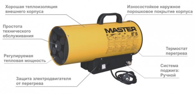 Mais, en général, un pistolet électrique est une bonne option pour maintenir la température requise dans la boîte et le plus ignifuge par rapport aux autres appareils de chauffage lors du chauffage d'un garage par temps froid.
