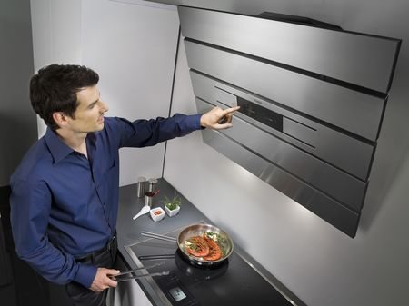 Une conception maison avec un dôme qui aspire l'air qui monte au-dessus du poêle et le tire hors de l'appartement est préférable.