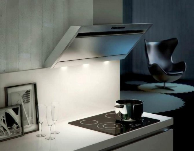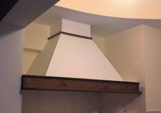 Une autre question est de savoir s'il faut ou non fabriquer une cloche en éventail. Le test montre que la boîte avec une douille capte mieux l'air à évacuer, mais cela alourdit visuellement la structure, et souvent une personne qui aime cuisiner la touche avec sa tête. De nombreux modèles d'usine ont un rétroéclairage sur le bord inférieur du ventilateur, ce qui doit être fait sur une hotte maison.