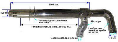 Le tuyau coaxial est conçu de telle manière qu'à travers sa partie intérieure, les gaz d'échappement sont évacués à l'extérieur et l'air propre nécessaire au processus de combustion est fourni par un canal externe.