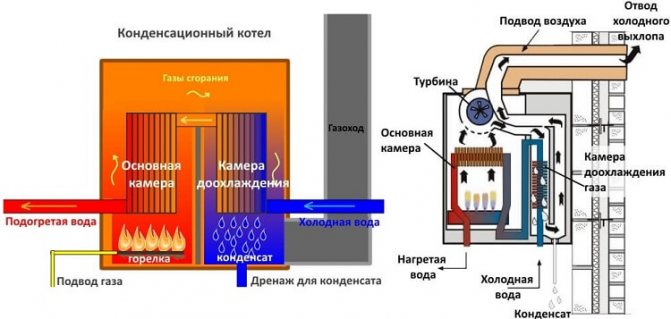 Ce terme est apparu dans la vie de tous les jours relativement récemment, mais aujourd'hui, de nombreux propriétaires comprennent le principe de la chaudière, à cause duquel ce nom lui a été attribué. Un réchauffeur à condensation utilise la chaleur non seulement du gaz de combustion, mais aussi de la vapeur qui, dans une conception de chaudière conventionnelle, est émise dans l'atmosphère par la cheminée.
