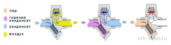Ils ont une conception quelque peu similaire, comme dans le type précédent, mais le principe de fonctionnement est basé sur la différence de température entre la vapeur et le condensat.Ici, une capsule avec une composition spéciale qui réagit à la chaleur est chargée d'ouvrir / fermer la vanne de sortie.