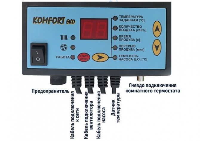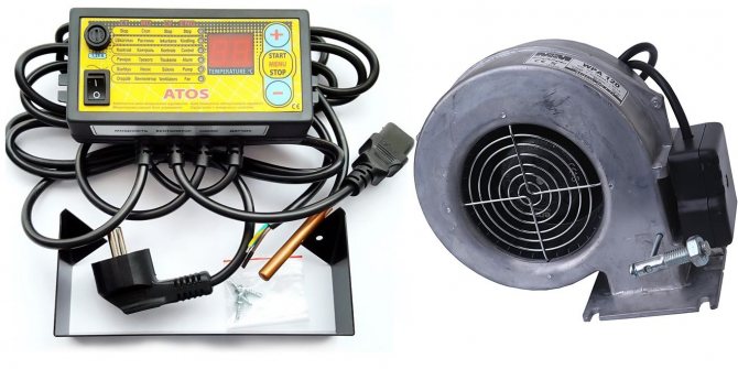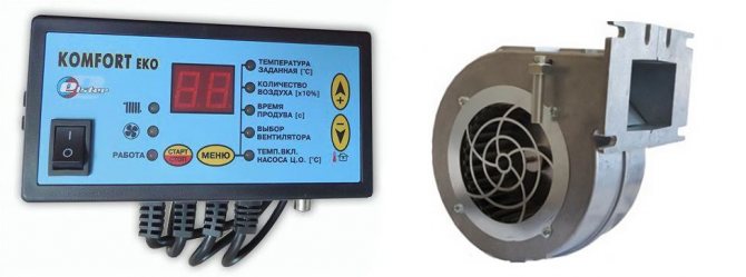 Le contrôleur et le ventilateur peuvent être achetés sous forme de kit prêt à l'emploi ou séparément. Cependant, ils ne fonctionnent que par paires. De plus, la plupart des contrôleurs prennent en charge le contrôle d'une pompe de circulation, d'un extracteur de fumée, il est possible de le contrôler à l'aide d'un thermostat d'ambiance et d'organiser un contrôle en fonction des conditions météorologiques. Les modèles les plus fonctionnels ont un module GSM intégré.