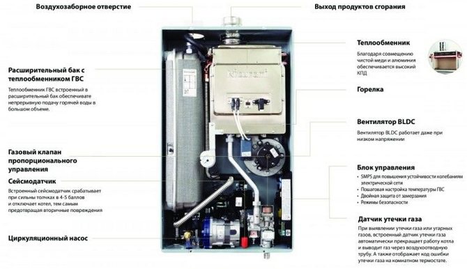 - Haut degré de sécurité. Les chaudières murales sont équipées de douze capteurs pour la protection contre toutes sortes de dysfonctionnements.