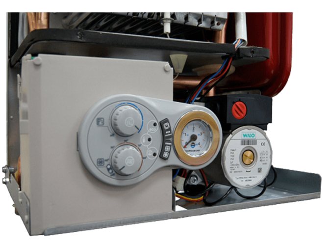 - L'échangeur de chaleur en cuivre est primaire. Acier - secondaire.