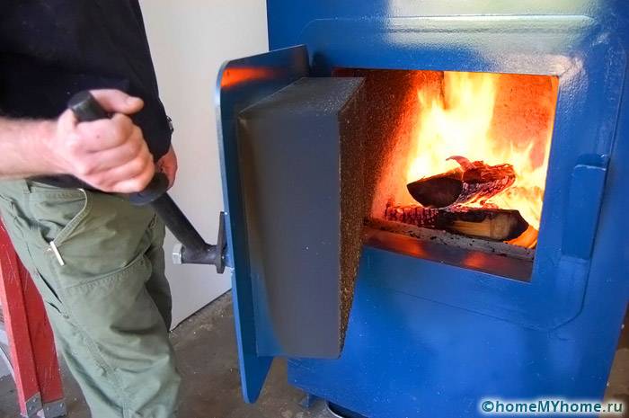 La chaudière est très simple à utiliser. Tout d'abord, il est nécessaire de charger du carburant dans la chambre, et de le faire le plus étroitement possible, sans laisser de grands espaces, car la durée de la combustion en dépend. Si vous utilisez du charbon, il est à noter qu'il est interdit de le reconstituer en brûlant. Dans le cas du bois de chauffage, vous pouvez les jeter, mais n'ouvrez pas les portes en grand pour ne pas vous brûler.