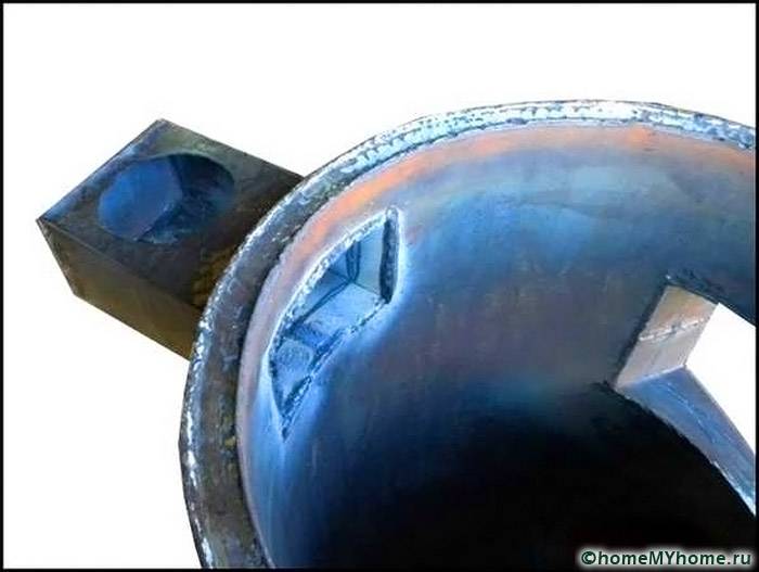 - Percez un trou pour la cheminée et soudez un tuyau d'un diamètre de 130 mm.