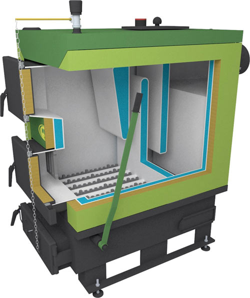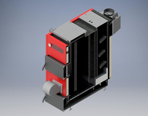 Ils se composent de deux caméras, qui divisent la chaudière en deux parties verticales. Le bois de chauffage brûle dans le premier, un échangeur de chaleur est dans le second.