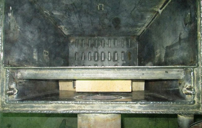 - 2 trous sont percés entre la chaudière et la chambre de combustion dans la cloison - en haut et en bas près de la grille.