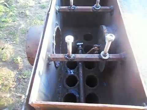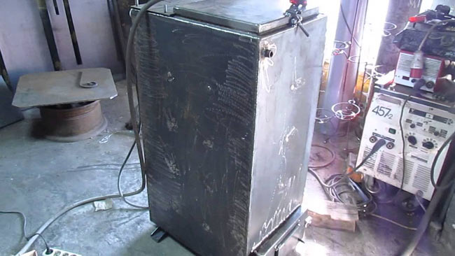 Une découpe inférieure en tôle d'acier y est soudée. N'oubliez pas les jambes. Ils doivent supporter le poids d'une structure lourde sans dommage. Pour certaines entrées et sorties, des longueurs de tuyau de taille appropriée fonctionneront. Les attachements d'armature et d'attachement sont créés à partir des sections de canal.