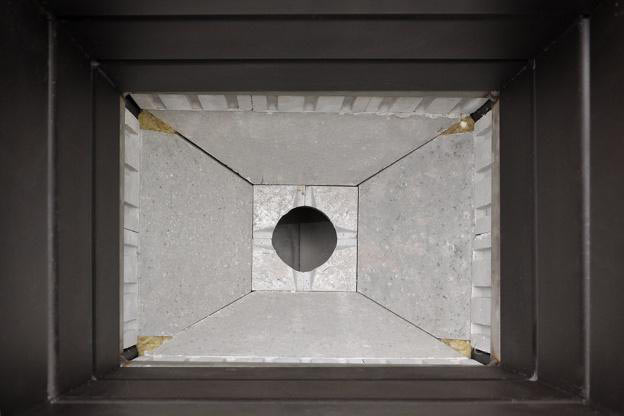 Les couvercles sont sécurisés avec des verrous spéciaux, seul le panneau arrière est fixé avec des vis amovibles. La porte à cendres est refroidie par des courants d'air continus, elle contient donc moins de 50% d'isolation thermique.
