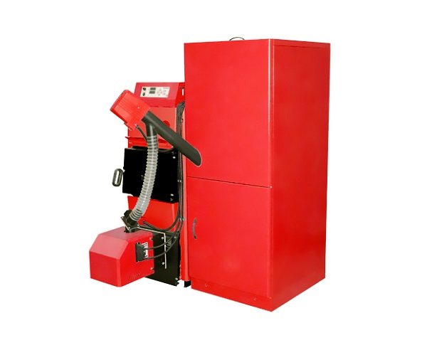 Le carburant brûle au fond de la chambre de combustion fermée. Le deuxième puits est plus petit, sert à la postcombustion des gaz de combustion et à les refroidir dans la chaudière pour chauffer l'eau de chauffage.