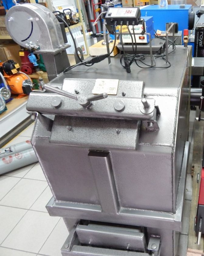 Un représentant presque idéal de la famille d'un fabricant allemand, conçu pour chauffer des locaux résidentiels ou industriels d'une superficie allant jusqu'à 450 mètres carrés inclus. Le principal combustible pour eux est le lignite à grains fins et le bois de chauffage. La principale caractéristique de ce modèle est la chambre de chargement verticale, qui est remplie par le couvercle en haut de la chaudière. Au fond de la chambre se trouve une grille mobile, et pour cela un levier spécial a été inventé, situé sur le côté, pour secouer la grille.