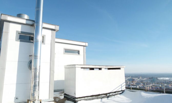 - La conception des chaufferies sur le toit n'est plus exigeante. La ventilation forcée et la disposition des cheminées ne sont pas nécessaires. SNiP permet à un équipement aussi énorme de chauffer des bâtiments jusqu'à 30 m de haut.