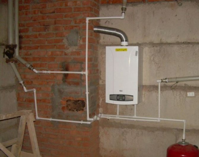 Pour ce faire, il est nécessaire de percer le nombre requis de trous dans le mur du sous-sol, d'y insérer des chevilles et des ancrages et d'y fixer les supports de la chaudière à gaz.