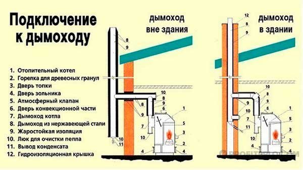 - la section transversale de la cheminée doit correspondre au format de la cheminée de la chaudière.