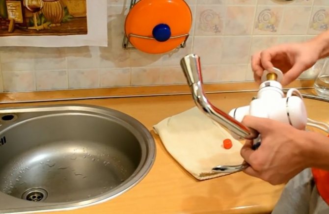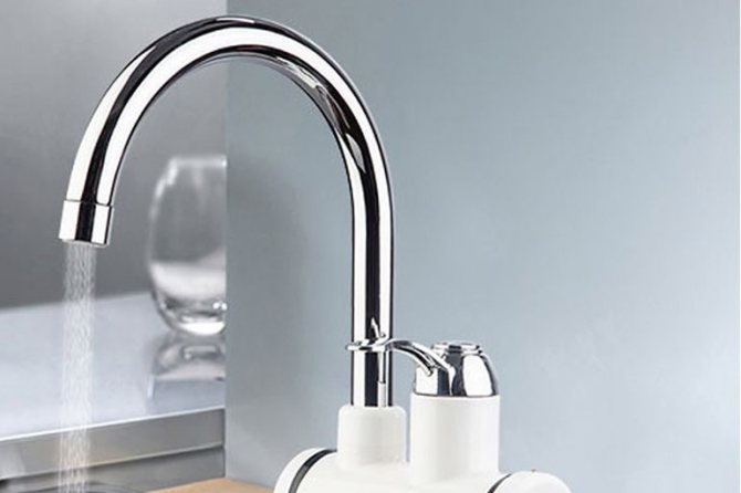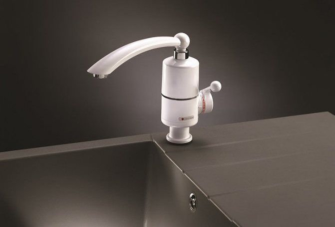 - Les chauffe-eau sous la forme d'un mitigeur de lavabo représentent la part de marché principale... À l'intérieur, ils ont un élément chauffant, à travers lequel l'eau passe sous pression. Le principal inconvénient de ces conceptions par rapport aux buses individuelles est le prix élevé et la nécessité de démonter l'ancien mélangeur.