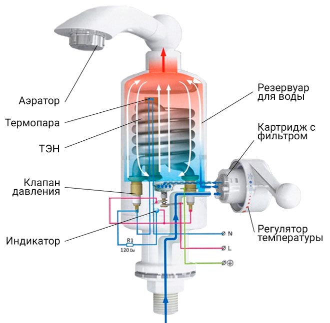 - Efficacité accrue. L'appareil ne fonctionne que lorsqu'il est utilisé. Après avoir fermé le robinet, l'énergie cesse d'être consommée.