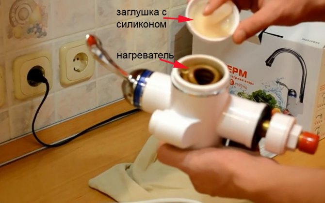Le corps du radiateur électrique instantané est fabriqué selon le schéma standard du robinet d'eau du mélangeur, son installation dans la cuisine est donc assez simple. Vous pouvez installer un radiateur électrique instantané au lieu d'un robinet classique sur l'évier, ou faire une conclusion supplémentaire sans changer ou retirer un mitigeur existant. Un plastique résistant à la chaleur ou un matériau composite du type cermet est le plus souvent utilisé comme matériau du corps.