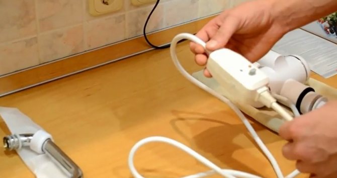 Les modèles plus chers sont équipés de systèmes RCD. Un petit appareil coupe l'alimentation si le capteur de courant détecte que l'électricité ne fuit pas à travers le serpentin de chauffage, mais à travers le jet d'eau. Compte tenu du fait que lors du lavage de la vaisselle et des mains, un grand nombre d'agents solubles dans l'eau sont utilisés pour augmenter la conductivité de l'eau, la présence d'un dispositif de protection sera un ajout très utile et important à la conception du radiateur. S'il n'y a pas de dispositif de ce type dans le circuit de commande de chauffage, il est extrêmement important de l'acheter et de l'installer avant d'utiliser le chauffe-eau avant l'installation.