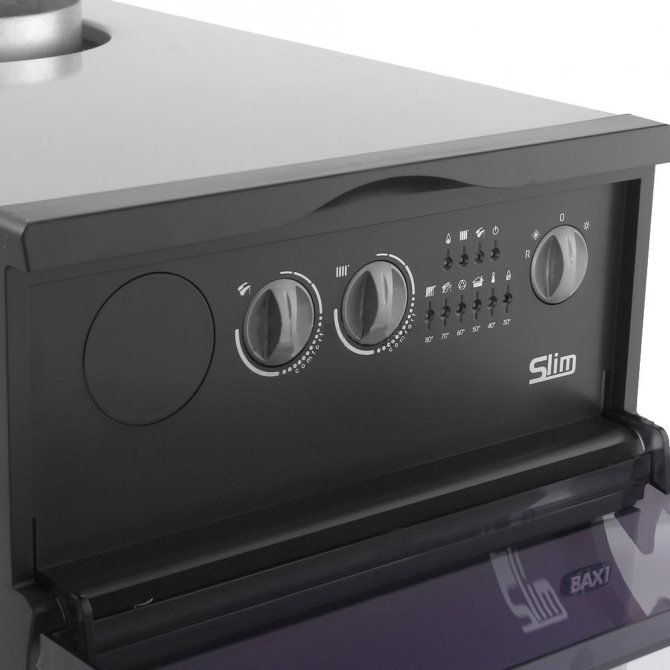 Dans le cadre de la série, le modèle Slim EF est produit, équipé d'une automatisation au gaz: si la flamme du brûleur s'éteint, la vanne se ferme automatiquement. Il s'agit d'installations non volatiles reliées à des systèmes à circulation naturelle du liquide de refroidissement.
