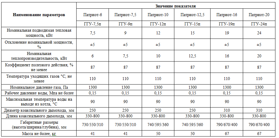 3.2.Les chaudières fonctionnent au gaz naturel GOST 5542-96 et sont livrées montées