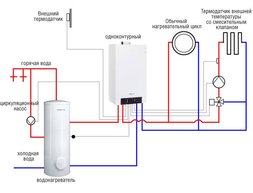 Les échangeurs de chaleur en cuivre sont utilisés dans les chaudières murales, ils fournissent un chauffage rapide, ce qui réduit la consommation de carburant. En raison de la compacité et de la faible quantité d'eau, une pompe de circulation est nécessaire pour éviter l'ébullition.