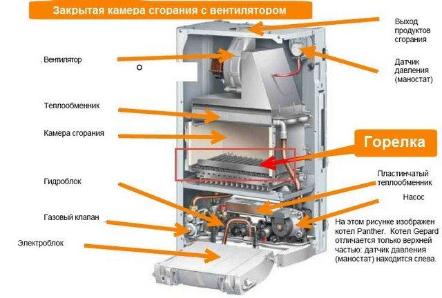 La tâche principale des éléments répertoriés dans les chaudières est de maintenir une combustion stable et constante du mélange résultant. Comme vous pouvez le voir, la conception d'une chaudière avec un brûleur à gaz est assez simple et son installation ne posera pas de difficultés.
