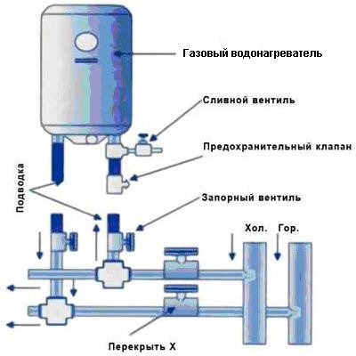 Veuillez noter que le schéma de raccordement de la chaudière à gaz est le même que celui du chauffe-eau à gaz. En fait, il n'y a pas de grandes différences entre ces unités, bien sûr, si l'on ne parle pas de gros chauffe-eau, qui sont généralement installés dans des maisons privées ou des chaufferies spécialement équipées. Le volume d'un chauffe-eau à gaz peut aller de 20 à 500 litres. Avec l'aide d'un tel appareil, vous pouvez immédiatement obtenir un grand volume d'eau chaude et le fournir à plusieurs points (robinets). Ainsi, vous alimenterez toute votre maison en eau chaude, quelle que soit sa taille.