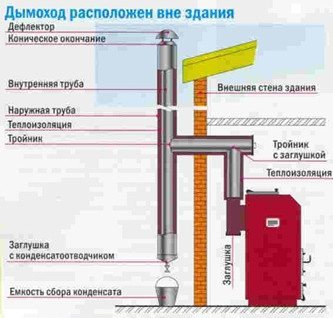 Schéma du dispositif de cheminée à l'extérieur du bâtiment.