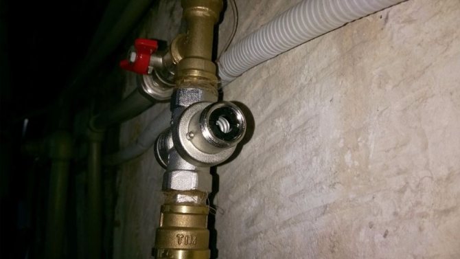 Un té avec un clapet latéral apparaît entre le clapet anti-retour et le raccord, qui sert à vider rapidement le réservoir. Une vanne d'arrêt sur la ligne chaude est installée dans un cas - lorsque le chauffe-eau est connecté aux tuyaux du système ECS centralisé.