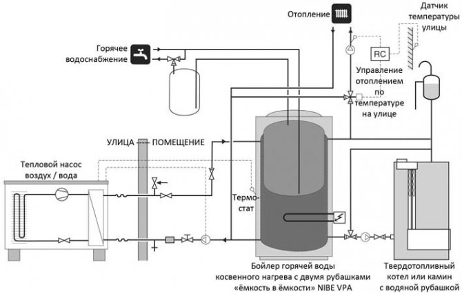Les chauffages à combustible solide sont des poêles avec une chaudière à eau qui chauffe le circuit de chauffage de la maison et fournit de l'eau chaude au ménage. Les inconvénients importants de ce système sont la nécessité d'un contrôle constant du fonctionnement du four et du processus de combustion, car le système de chauffage a constamment besoin de combustible et chauffe de manière inégale.
