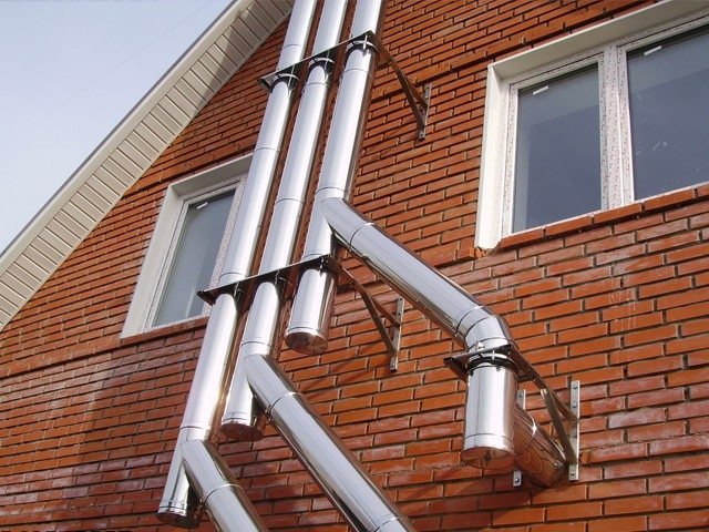 Lors de l'aménagement d'un système d'évacuation dans une maison privée, il est important d'amener la cheminée au-dessus du toit de plus de 1 mètre.