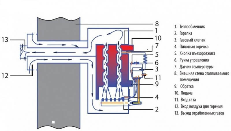 Une caractéristique distinctive de la chaudière à parapet est que lorsque le gaz brûle, l'oxygène n'est pas brûlé, ce qui est important, en particulier pendant la période automne-hiver. Pour le connecter aux réseaux d'ingénierie existants, aucune communication complexe n'est requise, un mur avec un trou pour la sortie du tuyau coaxial suffit. Les utilisateurs pensent à juste titre que les chaudières à parapet sont polyvalentes et prometteuses pour l'installation d'un chauffage individuel dans une maison privée ou des appartements dans un immeuble à plusieurs étages.